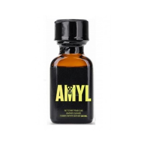 Poppers AMYL 24 ml pas cher. Après les incontournables JUNGLE JUICE le poppers AMYL arrive sur le marché, son flacon noir et jaune au nitrite d'amyle d'une forte puissance de nettoyant cuir tellement féroce qu'il est réservé aux avertis, aphrodisiaque et euphorisant puissant il vous emmène vers de nouvelles expériences sexuelles. A la recherche de nouvelles sensation essayez le poppers AMYL en 24 ml présent dans les club et aussi sur notre boutique univers-poppers.fr que vous pouvez visiter et pensez aux accessoires.